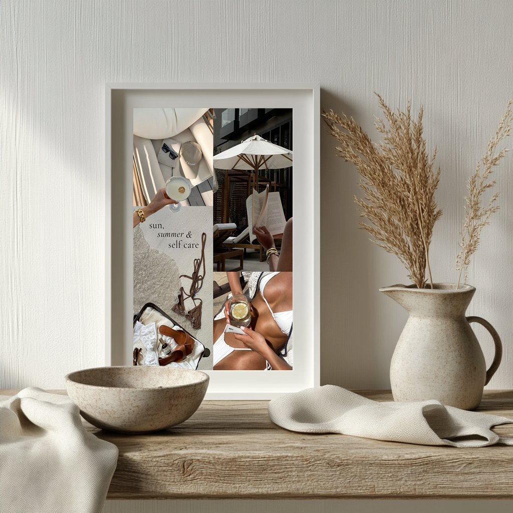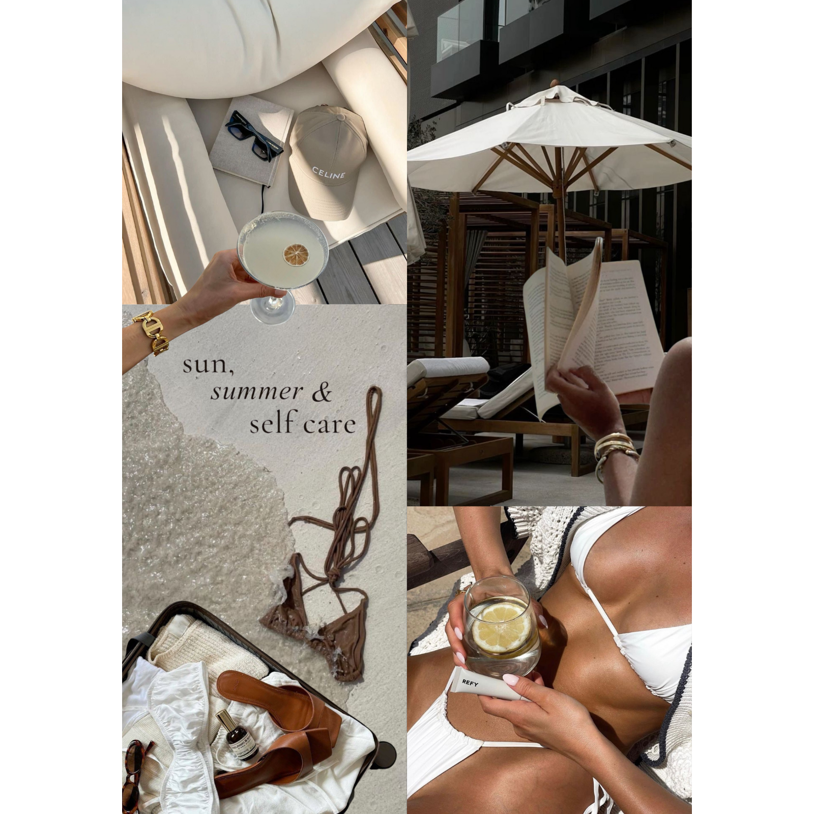 Es fängt den Moment ein, in der Sonne auf Selbstfürsorge trifft und Eleganz auf Entspannung.